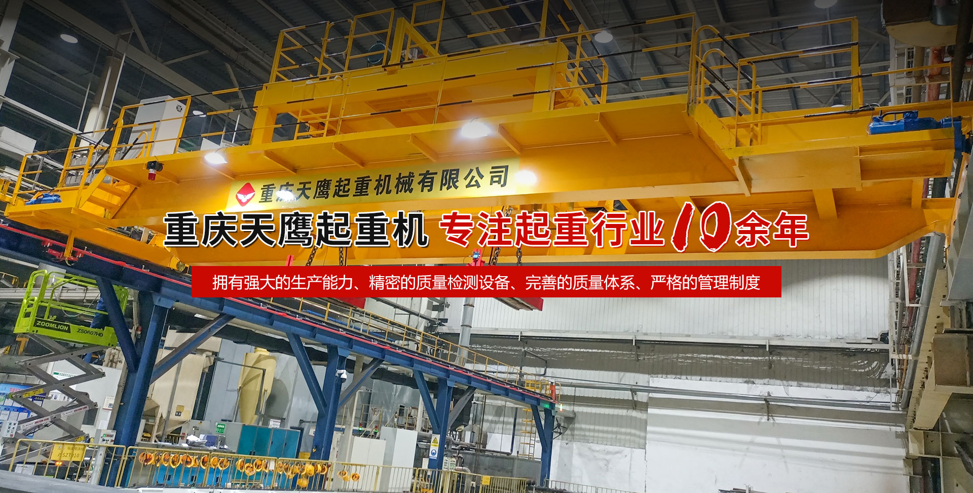 重慶天鷹起重機械有限公司成立于2014年,主營起重機的銷售、安裝和維護等相關服務。中國重型機械工業(yè)協(xié)會員單位、為中國工程機械工業(yè)協(xié)會工程機械維修分會會員單位及西南地區(qū)起重機械定點安裝維修單位。具有國家質(zhì)量監(jiān)督檢疫總局頒發(fā)的特種設備安裝維修改造質(zhì)格證書。并率先通過了IS09001-2000質(zhì)量體系認證。  公司注冊資金3000萬元;廠房面積2萬平方米;各種生產(chǎn)檢測設備50臺套,公司技術力量雄厚,聘請了國內(nèi)知名起重機專家、工程技術人員擔當項目經(jīng)理、技術總工程師及顧問。現(xiàn)擁有員工100多人,其中工程技術人員12人。  主導產(chǎn)品為各類橋、門式起重機及輕小型起重設備,具備生產(chǎn)起重量200t及以下通用橋、門式起重機的能力,尤其在200t以下起重機產(chǎn)品上具備較強的市場競爭力,為許多行業(yè)設計制造了技術含量高、技術性強的起重設備,許多產(chǎn)品在原設計標準上進行了較大的改進、優(yōu)化和創(chuàng)新;其中NH型系列電動葫蘆、HD型電動單梁處于國內(nèi)高水平.....  好的產(chǎn)品品質(zhì)需要由較高的裝備水平來保證,公司購買了“大型數(shù)控落地鏜”、“數(shù)控切割機床”、“自調(diào)式焊接滾輪機”、“數(shù)顯液壓板料折彎機”、“超大型數(shù)控臥式車床”、“數(shù)控液壓水平下調(diào)式三輥卷板機”、“單柱移動式立式車床”“擁有用于單梁生產(chǎn)的全國一條拋丸噴漆烘干線、葫蘆噴漆烘干線和全國較大的100T葫蘆試驗臺和檢測中心”等各種先進的加工設備,新建廠房面積近2萬平方米。  質(zhì)量是企業(yè)的生命,天鷹公司依據(jù)“ISO 9001國際質(zhì)量管理體系”標準,制定并完善了公司的質(zhì)量管理體制。堅持質(zhì)量體系的內(nèi)審和外審,將質(zhì)量管理工作落實到企業(yè)生產(chǎn)經(jīng)營的全過程。  您的微笑,是天鷹永恒的追求;天鷹的服務,是您首要的選擇!因為我們堅信:“誠信是本、質(zhì)量鑄就品牌”。為您服務是我們的榮耀,勤奮而進取的天鷹人,時刻期盼著您的到來。